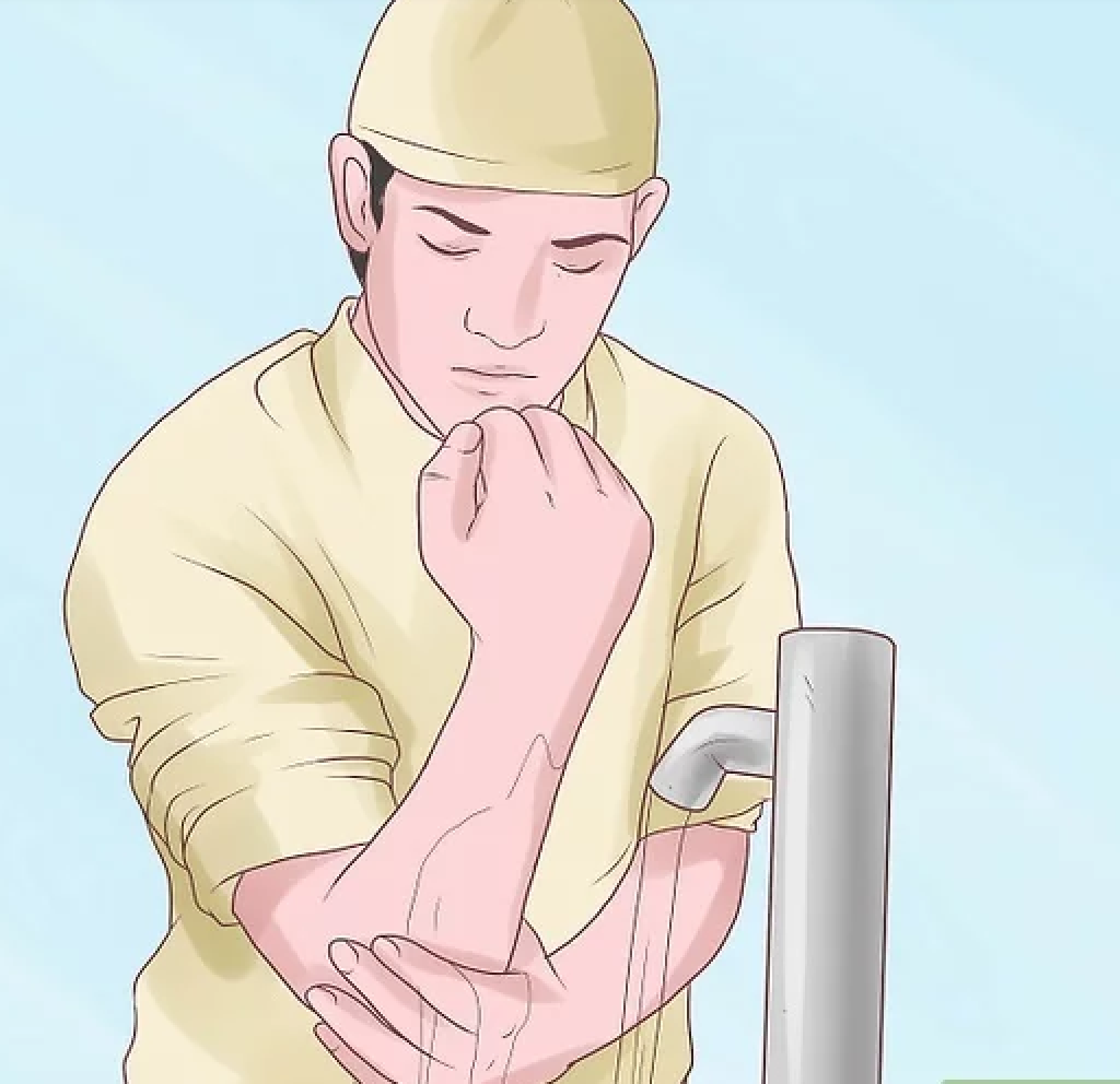 Starting with the right arm, wash the entire arm up to the elbows three times. Repeat the same for the left arm.
