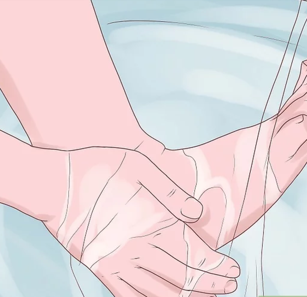 Starting with the right foot, wash the entire foot up to the ankles three times. Repeat the same for the left foot.